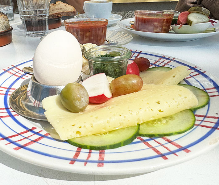 Das Angebot ist überschaubar, überzeugt aber durch viele regionale Bio-Produkte, die zB. von Jumi, Milchmäderl, Dirndln am Feld oder Adamah bezogen werden. Das „Caché Frühstück“ beinhaltet ein weiches Bio-Ei, Butter, Käse (schnitt & weich), Marmelade, Schnittlauch, Sauerteigbrot & Haus-Bagel-Roll (€ 9,-) und kann auch um Wachauer Schinken (€ 13,-) ergänzt werden, das „Caché Frühstück vegan“ kommt mit Tofu & Beans, Cashew Hauskäse, Marmelade, Schnittlauch, Sauerteigbrot & Haus-Bagel-Roll (€ 12,-) auf den Tisch und Joghurt wird mit Granola, Nussbutter & Kompott des Moments (€ 7,-) serviert, auf Wunsch auch als Kokosnuss Joghurt (€ 8,50). Der „Everyday Schafskäse Cheddar Scone“ wird mit Bio-Spiegelei, Hotsauce & eingelegtem Gemüse (€ 9,-) angerichtet, auf Wunsch mit Merguez Wurst gegrillt (€ 13,-).