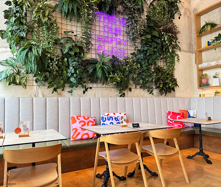 Begonnen als Pop-Up, hat das Goldstück im 3. Bezirk nun schon seit einiger Zeit eine fixe Bleibe gefunden, und die ist bunt, fröhlich und wirklich sehr einladend. Das helle Lokal mit viel Holz, Pflanzen und farbenfroher Deko macht gleich beim Eintreten gute Laune – hier ist wirklich ein schöner Ort, um den Tag mit einem vegetarischen / veganen Frühstück aus biologischen, saisonalen, regionalen Zutaten und gerettetem Obst & Gemüse zu beginnen.