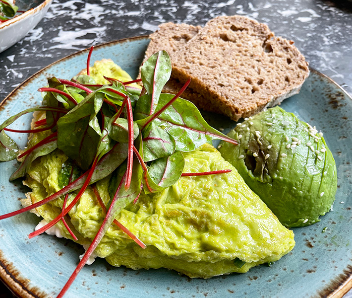 Auch Freiland-Eier in verschiedenen Variationen wie „Creamy Potato“ (€ 8,20), ein pochiertes Ei auf cremigem Erdäpfelpüree mit sautiertem roten Babymangold und Erdäpfelknusper, das „Green Herb Omelette“ (€ 11,20), ein Kräuter-Omelette aus zwei Eiern mit Avocado, Cottagecheese, mariniertem roten Babymangold und Rainer Roggen, pochierte Eier „Florentin“ (€ 11,20), „Benedict“ (€ 11,90) und „Royal“ (€ 12,50), Eierspeis (€ 6,50) und Ham oder Bacon und Eggs (€ 6,50) finden sich auf der Karte.