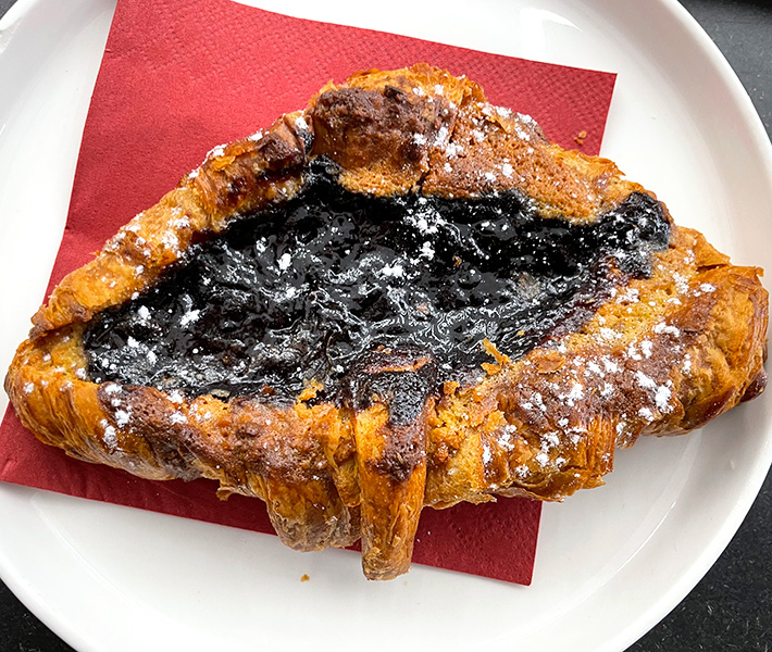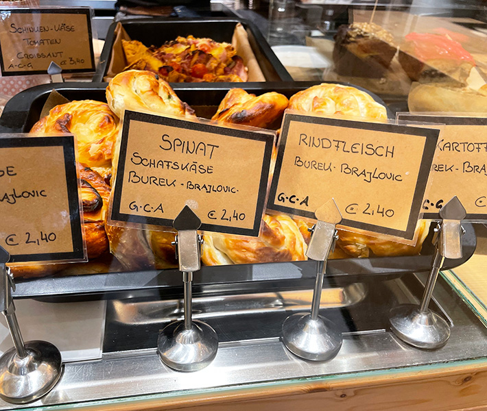 Ich habe das Mandel-Powidl Croissant (€ 3,40) und einen Cappuccino (€ 3,40) getestet. Der Cappuccino war sehr gut. Das Croissant hatte eine erfrischend fruchtige Note durch den Powidl – lediglich die Mandeln hätten für meinen Geschmack ruhig eine Spur dominanter sein können. Die Kombination ist aber wirklich eine schmackhafte Abwechslung zu den üblichen Croissant-Füllungen.