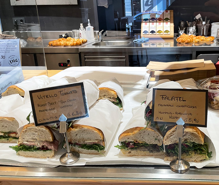 Im Gorilla Market kann man während der Woche bereits ab 07.00 Uhr mit diversen Croissants, Sandwiches, Kuchen oder Brownies ein schnelles Frühstück mit feinem Kaffee genießen.