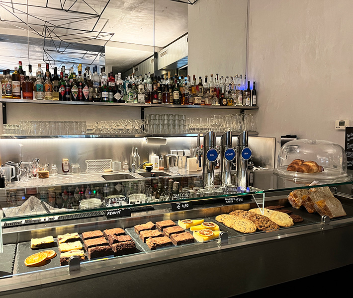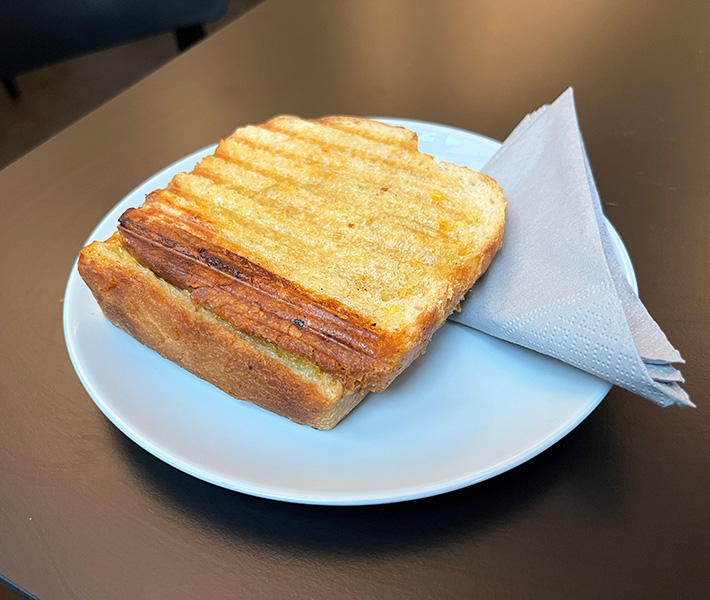 Die Frühstückskarte ist überschaubar und beinhaltet einige Mehlspeisen wie verschiedene Brownies und Muffins (€ 4,40), Cookies (€ 3,40), Zitronen Tarte (€ 4,90) und Croissants (€ 2,60). Es wird eine Frühstücks-Kombi angeboten: das „Frühstücksbrot“ mit zwei Scheiben Krustenbrot, griechischem Joghurt, hausgemachter Feigenmarmelade und Olivenöl (€ 7,90). Für pikante Frühstücker*innen gibt es zwei getoastete Sandwiches, das Kimchi Melt (Bio-Erdäpfelbrot vom Joseph, Kimchi, Cheddar) und das Tuna Melt (Bio-Erdäpfelbrot vom Joseph, Tuna, Mayo, Sellerie, Rosinen, Koriander, Cheddar) um je € 6,90.