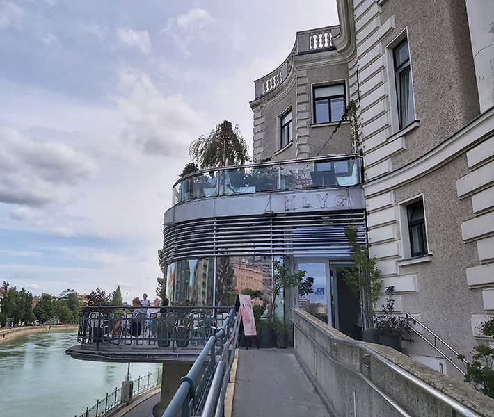 Sterne beobachten, Filme schauen oder sich ein Frühstück schmecken lassen – all das kann man in der Urania im 1. Bezirk. Das Gebäude beherbergt nämlich unter anderem eine Sternwarte, ein Kino und ein Lokal, das Klyo. Dieses wurde nach Zeus Tochter, die auch die Muse der Geschichtsschreibung ist, benannt. Das Klyo liegt direkt am Donaukanal, den man durch die Fensterglasfront oder von der Terrasse aus sehen kann. Wenn man den Blick in die Ferne schweifen lässt, kann man am anderen Ufer sogar einen Teil des Wiener Riesenrads erkennen.