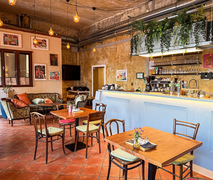 Im Lebenslinien Café erwartet euch cooles, gemütliches Ambiente mit kleiner, guter Karte (etwas teuer) und tollem Kaffee (wenn schwarz) – nicht nur für Tattoo-Fans eine schöne Frühstückslocation.