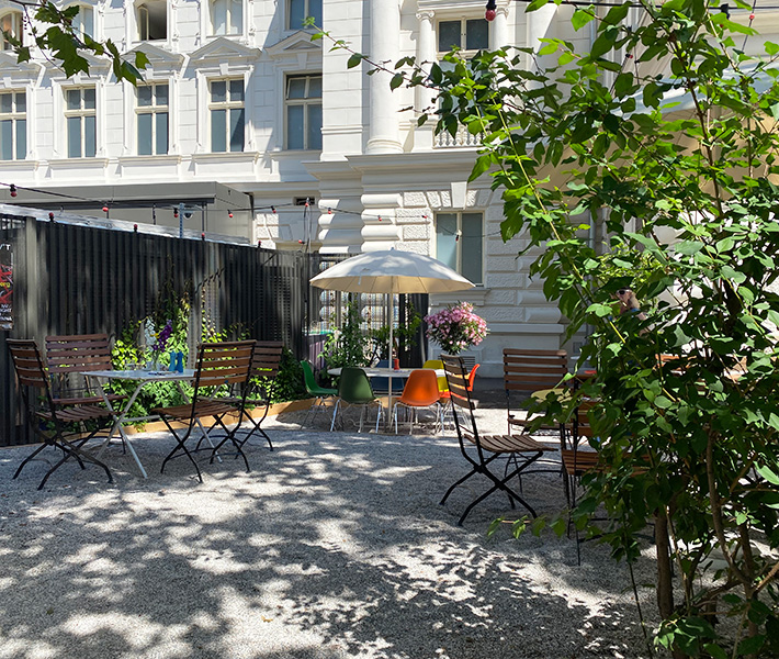 Nach der Renovierung des Volkstheaters gibt es mit dem Liebling im Volkstheater jetzt endlich auch ein Lokal mit Garten, in dem man glücklicherweise auch herrliches Frühstück genießen kann. Die Betreiber sind in der Wiener Frühstücksszene keine Unbekannten: zum kleinen „Lokalimperium“ von Moritz Baier und Daniel Botros zählt neben dem Liebling in der Zollergasse unter anderem auch noch das Burggasse 24 und das Café Kriemhild. Schön ist, dass es in der neuen Liebling-Dependance ein eigenständiges Frühstücksangebot gibt, die Getränkekarte wurde sogar extra auf eine große Stoffserviette gedruckt. ;-) Im dicht begrünten Garten gibt es jetzt im Sommer so einige schöne, schattige Plätzchen – und wer Glück hat, kann sich den ersten Kaffee sogar in einer Hollywood-Schaukel schmecken lassen.