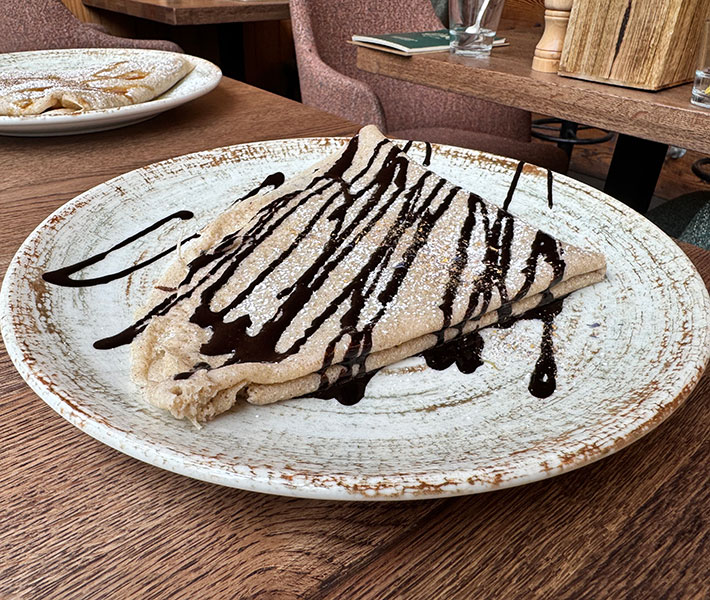 Galettes und Crêpes sind glutenfrei, Heißgetränke werden auch mit Hafermilch serviert