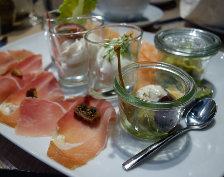 Die schönste Mahlzeit des Tages wird im Rauwolf Montag bis Samstag ganztags ab 08.00 Uhr serviert – so lange der Vorrat reicht. Man wählt zwischen den „Kleinen für Genießer“, jeweils mit Brotsackerl und Bio-Butter: „Petite Parisienne“ (Zwei Marmeladen von Staud’s oder d’arbo Blütenhonig) um € 5,50, „Tiroler Neinerle“ (Bio-Bergkäse und Beinschinken) um € 5,90, „Piccolo Trentino“ (Prosciutto, getrocknete Feigen und Ricotta) um € 5,90, Smalaks (Räucherlachs mit hausgemachter Avocadocreme) um € 6,50 oder „New York Style“ (Pastrami, Hummus und getrocknete Tomaten) um € 5,90 oder – für mehr Hunger – den „Großen für Genießer“, jeweils mit Brotsackerl, Bio-Butter und einem kleinen Glas frisch gepressten Orangensaft oder Prosecco: „Das Pikante“ (Räucherlachs, hausgemachte Avocadocreme, Prosciutto, Ricotta, Bio-Ei im Glas, Ziegenfrischkäse mit Riesenkaper und Bio-Oliven und knackige Rohkost) um € 12,90, „Das Vitale“ (Beinschinken oder Bio-Bergkäse, knackige Rohkost, Bio-Joghurt mit Crunchy Müsli und hausgemachtes Beerenragout, Bio-Ei im Glas, Ricotta und Marmelade von Staud’s) um € 9,90, „(Nicht) nur für Männer“ (3 Eier im Glas, Prosciutto, getrocknete Feigen, Beinschinken oder Bio-Bergkäse, Baked Beans und knackige Rohkost) um € 10,90, „Das Vegane“ (Hummus, hausgemachte Avocadocreme, knackige Rohkost, saisonaler Obstsalat, Baked Beans, Riesenkapern, Marmelade von Staud’s und Margarine) um € 10,90 oder „Das große für 2“ (Räucherlachs, hausgemachte Avocadocreme, Pastrami, Hummus, Prosciutto, getrocknete Feigen, Bio-Joghurt mit Crunchy Müsli, hausgemachter Fruchtsalat, Bio-Ei im Glas, knackige Rohkost, Baked Beans und ein Brownie zum Teilen) um € 23,90.