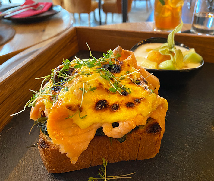 Besonderheiten im Schau.Spiel wie das „Breakfast Supreme“ mit Toast aus Butterzopf-Scheiben gefüllt mit knusprigem Speck, Mangoldspinat und Spiegelei, verfeinert mit Sauce Mornay und Nussbutter und einem Heißgetränk nach Wahl (€ 10,90) oder die „Liaison am Morgen“ mit gefülltem Croissant mit Schinken und Käse, dazu zwei weiche Eier auf sautiertem Blattspinat, gratiniert mit Sauce Hollandaise und einem Heißgetränk nach Wahl (€ 10,90) klingen ebenfalls verlockend. Wer sich sein Frühstück lieber selber zusammenstellt, hat auch hier eine große Auswahl, wie zB. verschiedene Eiergerichte (weiches Ei, Rührei, Ham & Eggs etc.) oder kleine Portionen von Käse, Schinken, Salami, Räucherlachs oder gebratenen Speck. Natürlich dürfen auch Speisen aus der Kategorie „Frisch & Fruchtig“ nicht fehlen, zB. Birchermüsli mit Naturjoghurt, frischem Obstsalat mit Ahornsirup (€ 4,10), lauwarmes Apfelmus mit warmem Getreidebrei aus Haferflocken (€ 3,80) oder ein kleiner, frischer Früchteteller (€ 4,20).