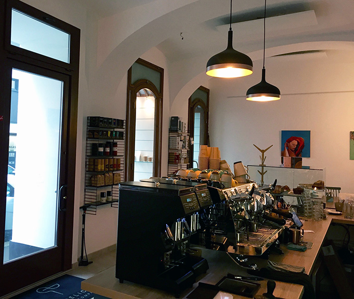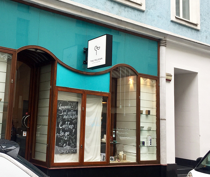 Die Pelican Coffee Company ist in einer Querstraße der Alserstraße, der Pelikangasse um genau zu sein, zu finden. Der Eingang sticht durch die freundliche meeresblaue Verglasung und das dunkle Holz hervor. Zu dem Lokal gehören jedoch auch noch die angrenzenden hohen Fenster, durch die man einen Blick in das gemütliche Innere des Pelican erhaschen kann. Die „Specialty Coffee Company“ in Wien Josefstadt wird mit viel Hingabe von Adam Kovacs und Vedran Sormaz geführt. Die beiden jungen Herren bringen ihre Erfahrung im Bereich der Kaffeerösterei ein und lassen ein ganz besonderes Plätzchen entstehen, in dem sie mit viel Sorgfalt nur das Beste zusammentragen: Kaffeebohnen führender Kaffeeröstereien aus Europa, feine Snacks sowie Geschirr, das Designfreunde mit seiner minimalistischen Art begeistern kann. Die Bezugsstätten der restlichen Zutaten sind stets möglichst lokal und in Bio-Qualität und die großen Tassen übrigens handgemacht – wer genau hinsieht, entdeckt das eingeritzte Pelican-Logo.